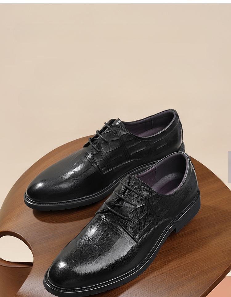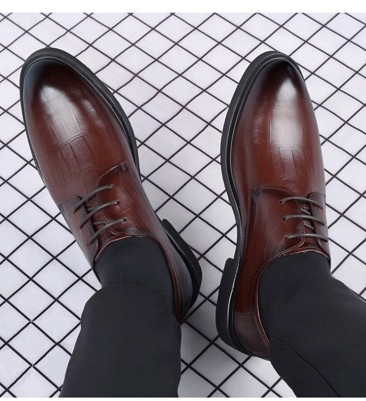 حذاء جلدي تجاري كاجوال للرجال مع وظيفة زيادة طول القامة ( زيادة طول القامة بصريا خلال 1 ثانية (