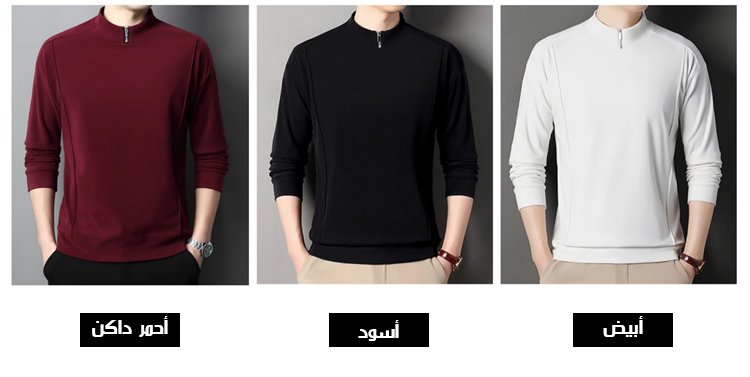 سويت شيرت كاجوال بأكمام طويلة وياقة نصف عالية للرجال